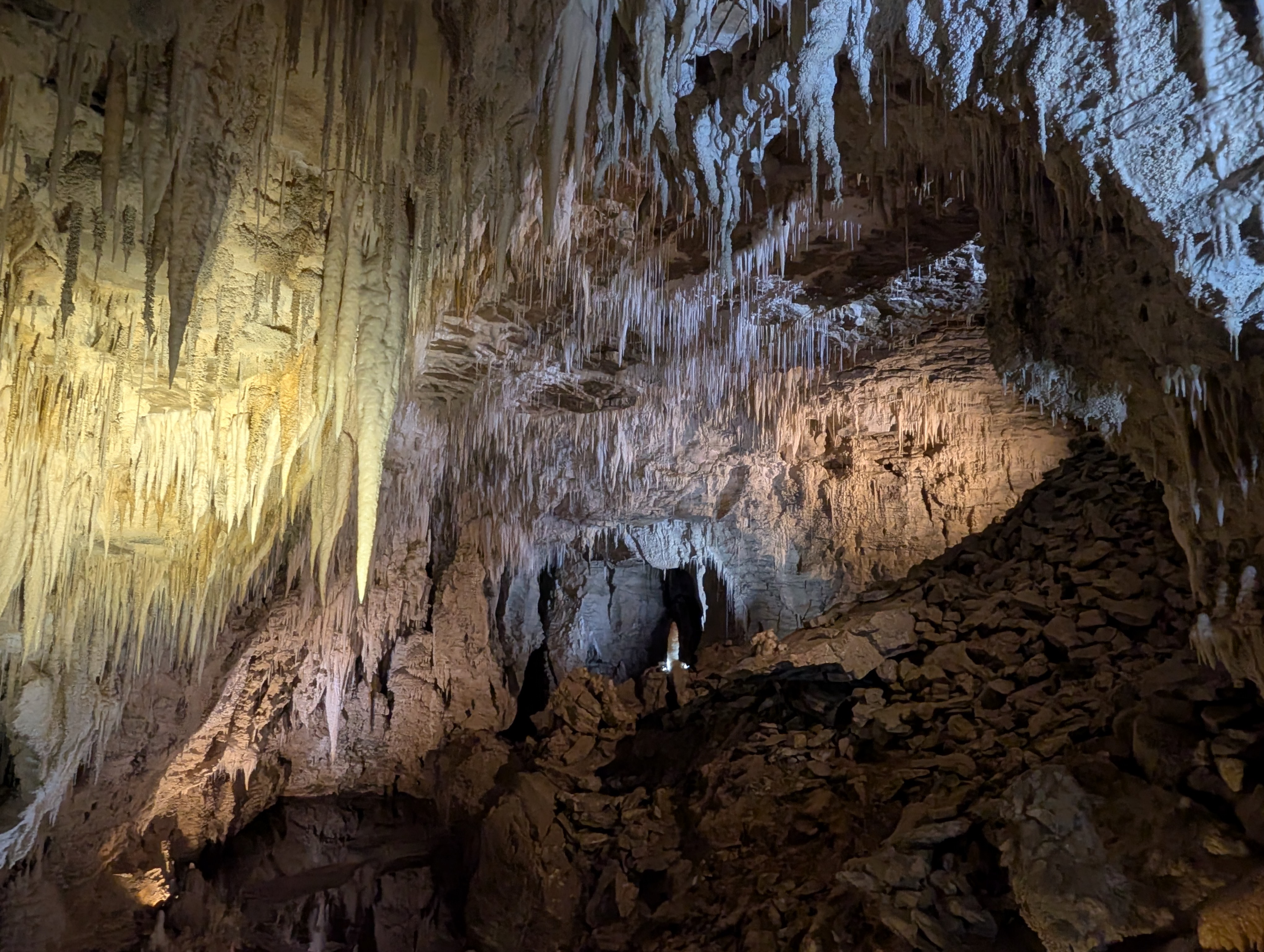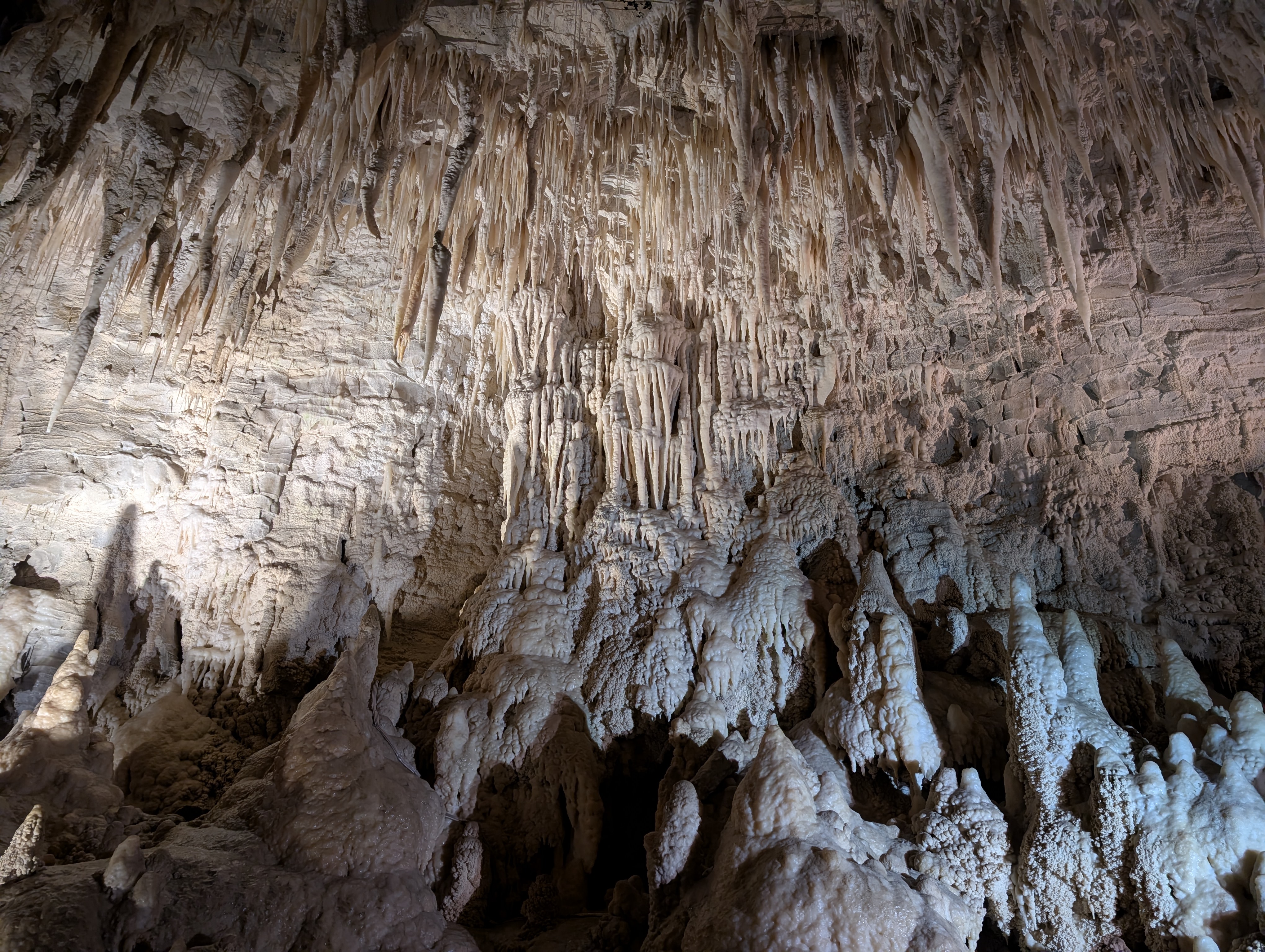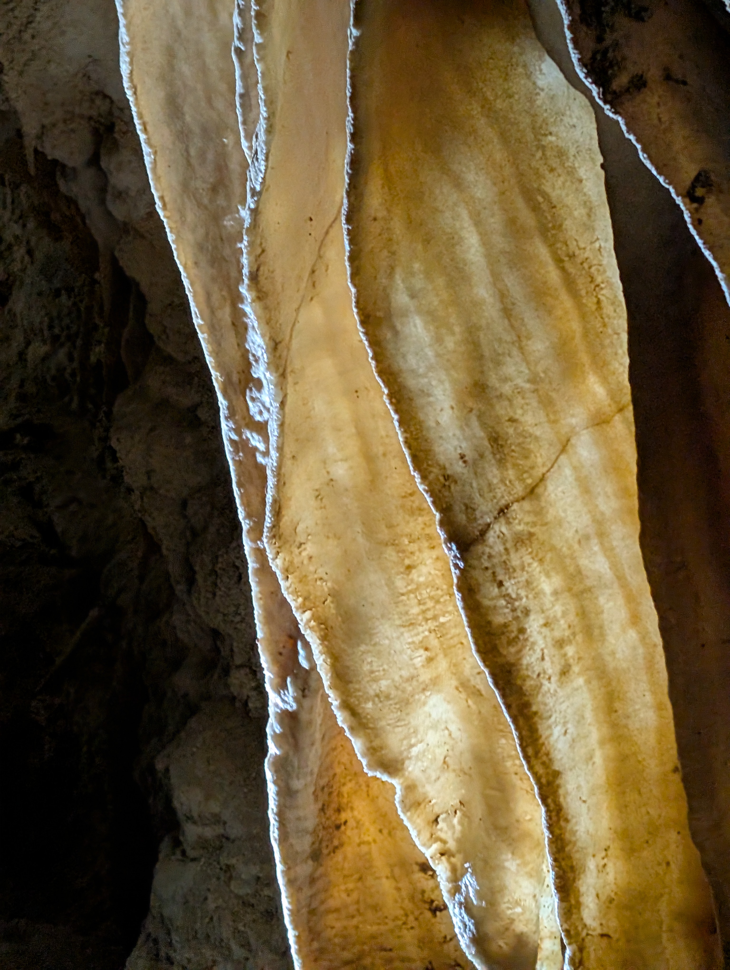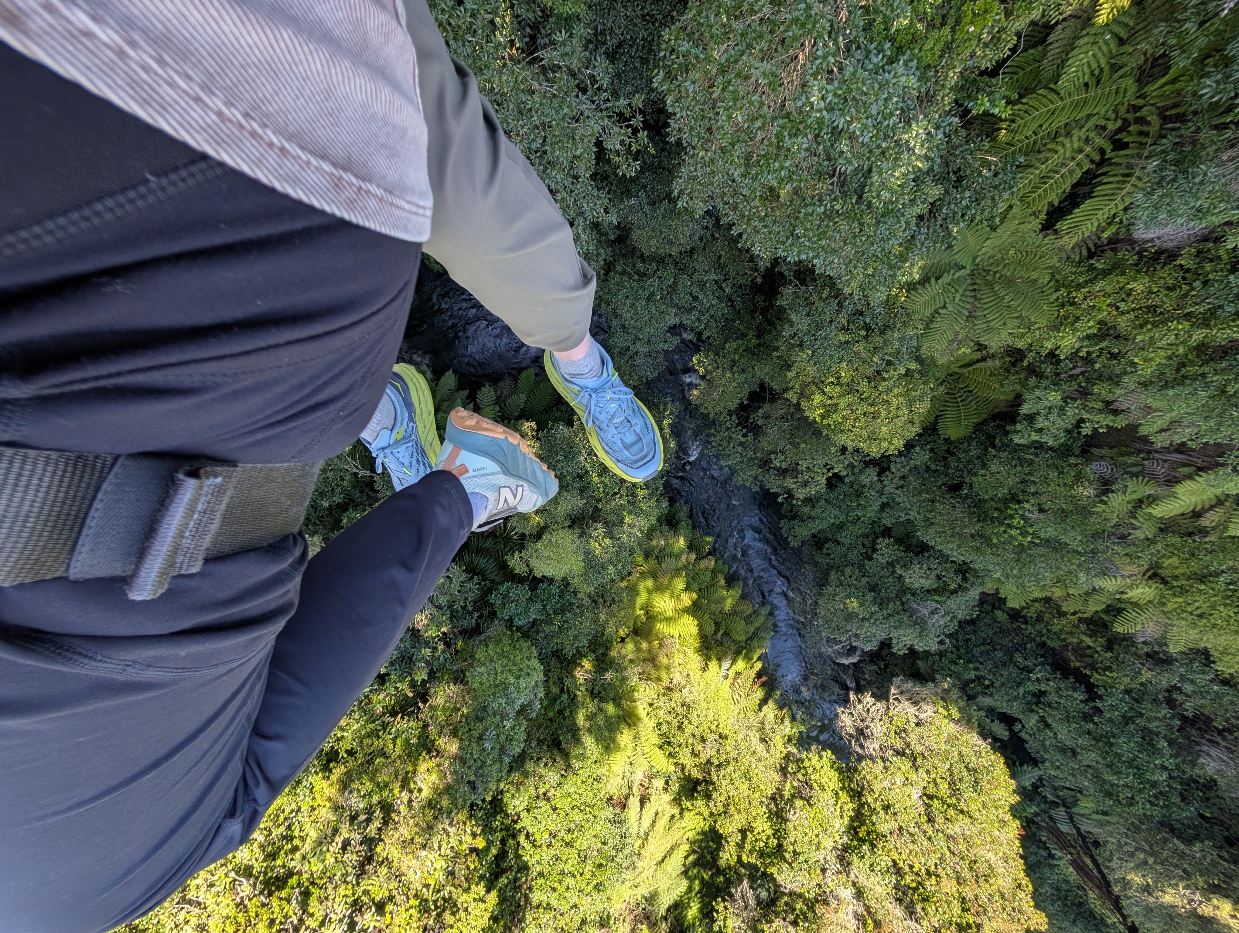 We’ve had a great two days in Waitomo. Our AirBnb was a home on a 700-acre working ranch with great views of pastures and countryside. Last night we met Fred and Barbara from England at dinner and talked for hours. Today we visited the caves and it was a glorious two hour tour, descending 150 meters underground on some truly astounding infrastructure. Waitomos’ claim to fame is its caves and magical glow worms. Depending on your level of strength and curiosity, you can raft the underground rivers or repel 300 meters down and hike the river bottom. About those glow worms: They are actually maggots. They glow to attract their prey, insects that find their way into the caves via a subterranean river. The insects are drawn to the starlike glimmer of the worms/maggots. They think the light is leading them out of the cave when they are actually being led to dinner. Nature, once again, teaches us about the dangerous draw of shiny things. In the afternoon we opted to drive to a Nature Sanctuary to view a protected site for birds. Lots of exotic birdsong, but few sightings in the late afternoon and dense forest. Oh, one sighting. An endangered owl. Quite a find for any birder. For Kate, it was dumb luck and a really good camera.