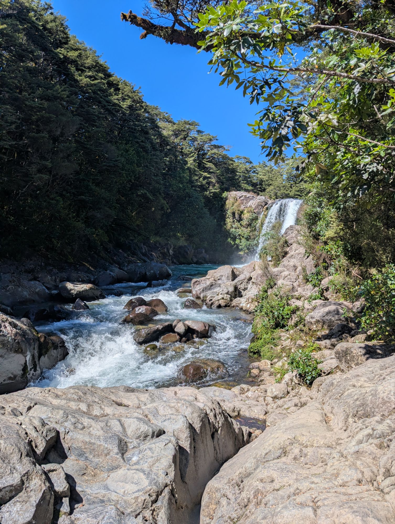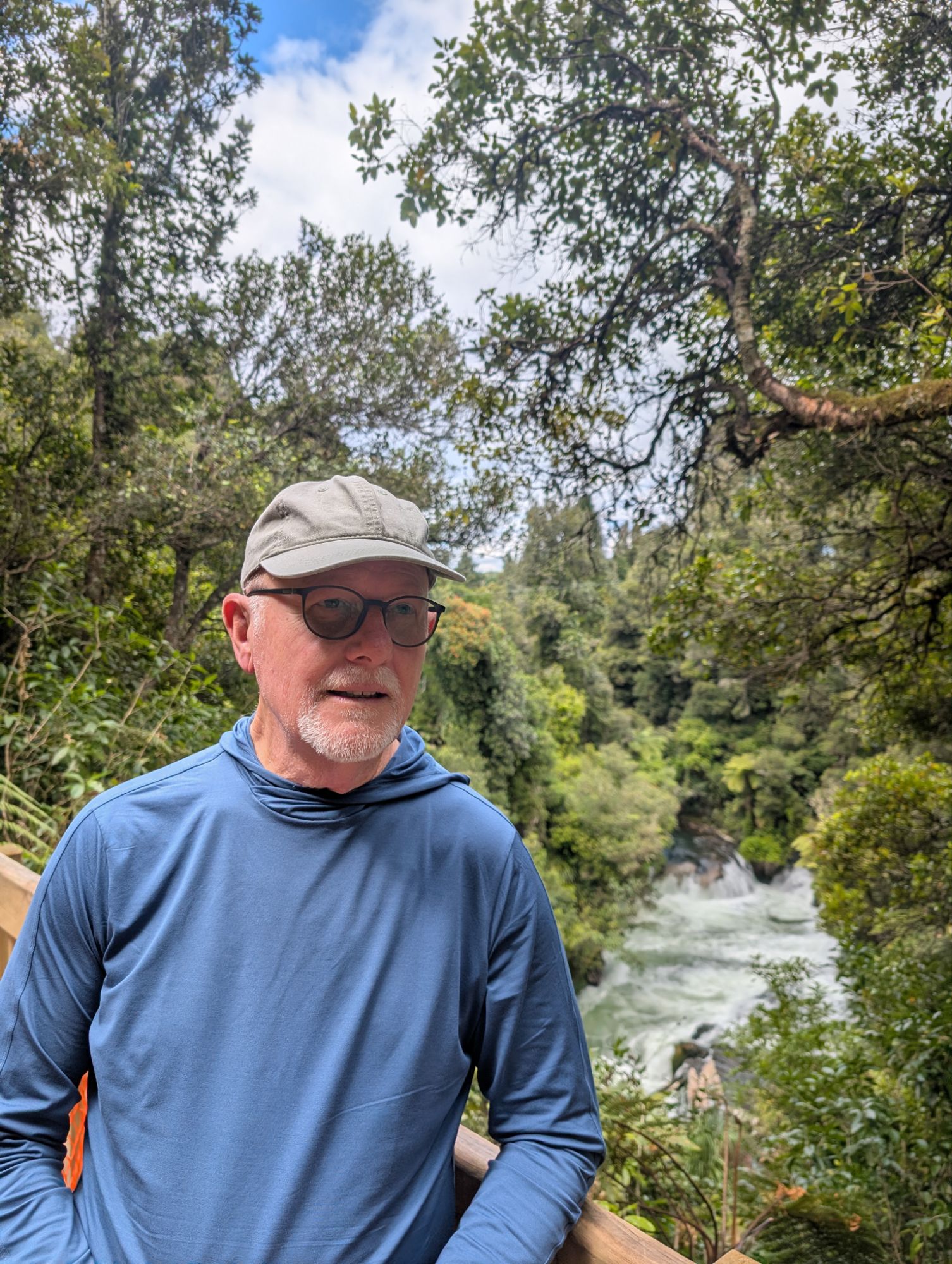We decided today would be a rest day. We slept in late and ventured out about noon to a fabulous breakfast at a local favorite. We were seated amidst families with small children. So interesting to see the way the Kiwis let their children, even the little toddlers wander on their own. The little ones develop confidence early as they explore on their own meeting other people. One two year old actually tried to leave with another family. No helicopter parents here. After breakfast, we took a nearby trail to view waterfalls and giddy tourists running the rapids. Later tonight we will watch the sky. Professor Google says we should see the Southern Cross and Centarius. We hope for clear skies. It looks promising!