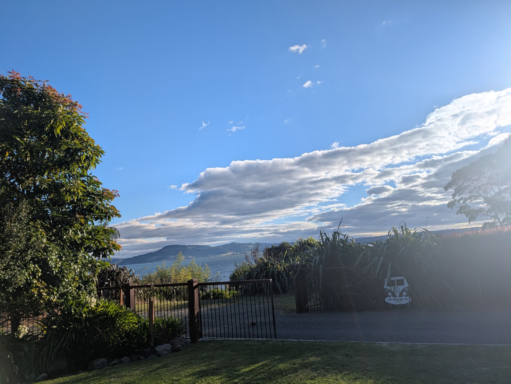 We were pretty exhausted when we arrived, between the driving and go-go-go of the last week. Kate is still recovering from a travel cold. We did venture out to the town center of Rotorua for dinner. First time driving in the dark. The Google Maps on both phones went bonkers. We got lost. Lovely. But, when we returned home, we sat out on the porch and had extraordinary stargazing. There was the Milky Way! This was a first for both of us Wow!