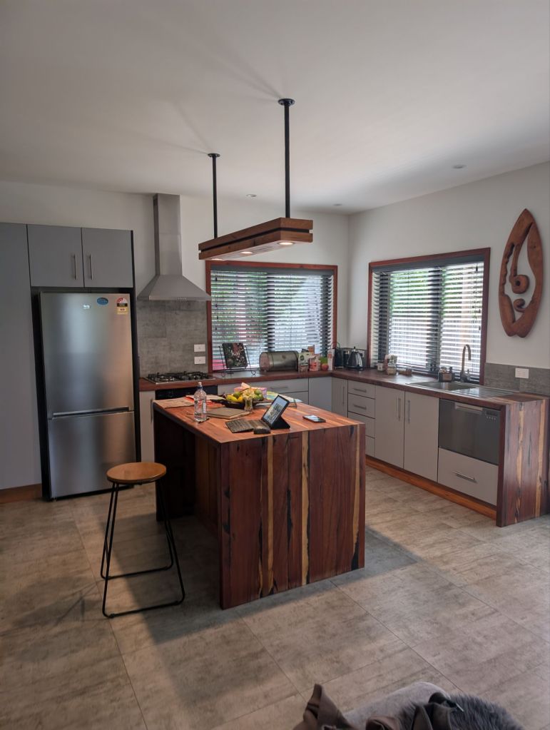 We thought we were going to Hahei Beach (pictured above on a sunny day), but JW actually booked us at Waihi Beach, about 2-hour drive of winding roads south of Hahei. At first we thought we were screwed, but it turned out to be a blessing on our wet, windy day. Most people know that Kate suffers mightily from motion sickness. Get me on a curvy road, and nausea is sure to follow. What most people don’t know about John and Kate is that we are not really beach people. Yep, even though we live in a beach town, sand and ocean is not our thing. But, how can we not visit a coastline that looks like this? What the picture doesn’t show is the road in and out of said coast. Miles and miles and miles and miles of glorious tropical mountains. Mountains mean, “Let the nausea begin.” If it was a sunny day, I would have endured. It was not. The only lousy weather we had was on the Coromandel Pennisula. So, we walked out onto the blustery beach, talked to a local fisherman who had hopes of catching a King Fish, local fish that can get as large as a tall man. We had a delicious lunch at a place whose Indian/ Kiwi owner really liked talking about tea. We returned back to our extraordinary Airbnb that was built by the woodworking host. We ate out of their garden for dinner and gorged ourselves on pineapple guava that was falling off of the backyard tree all night long. Incredibly delicious. Oh, and because John is John, he brought all the technical equipment that allowed us to connect to Apple TV. We caught up on our shows. What to do on a rainy night?