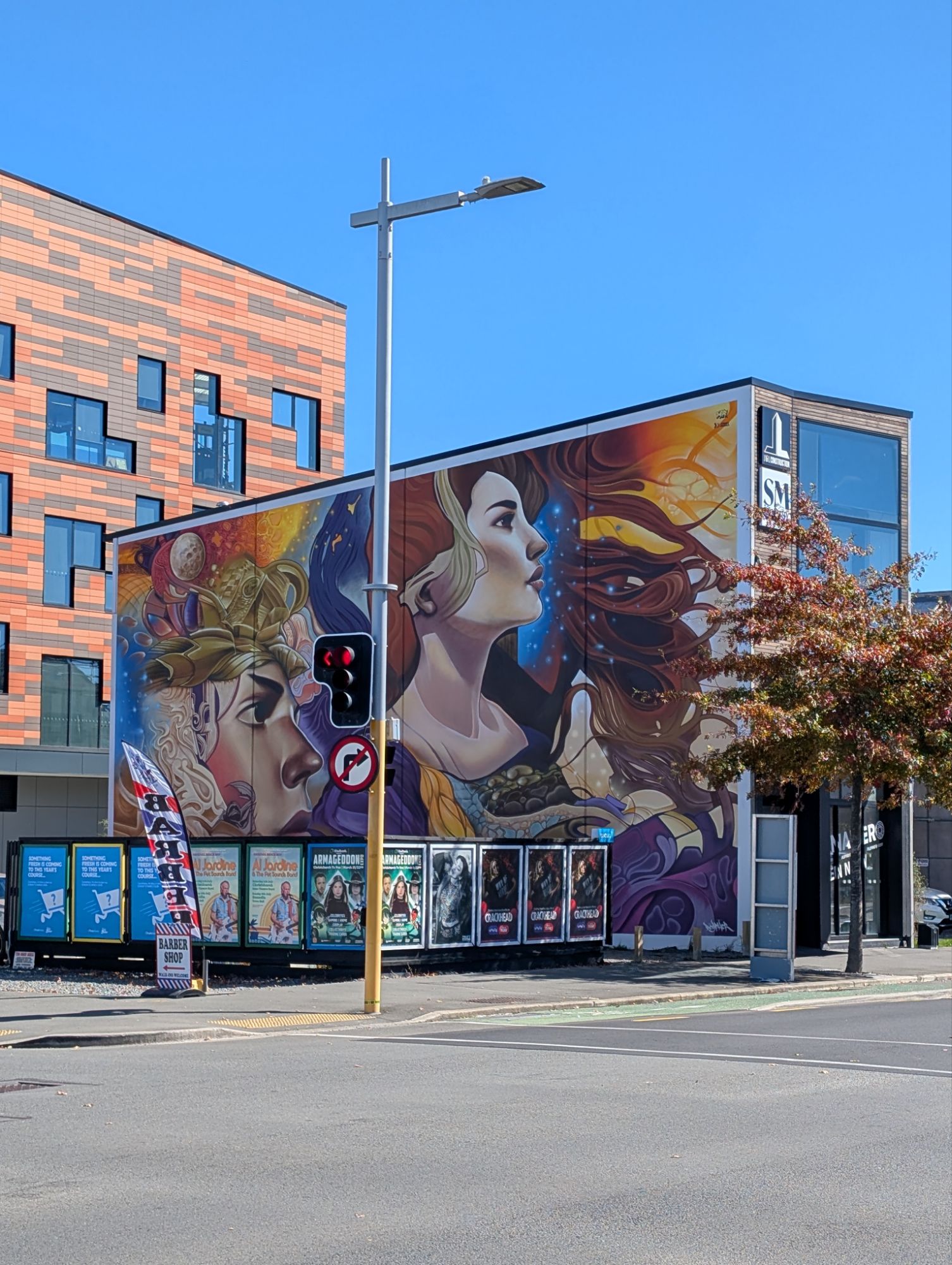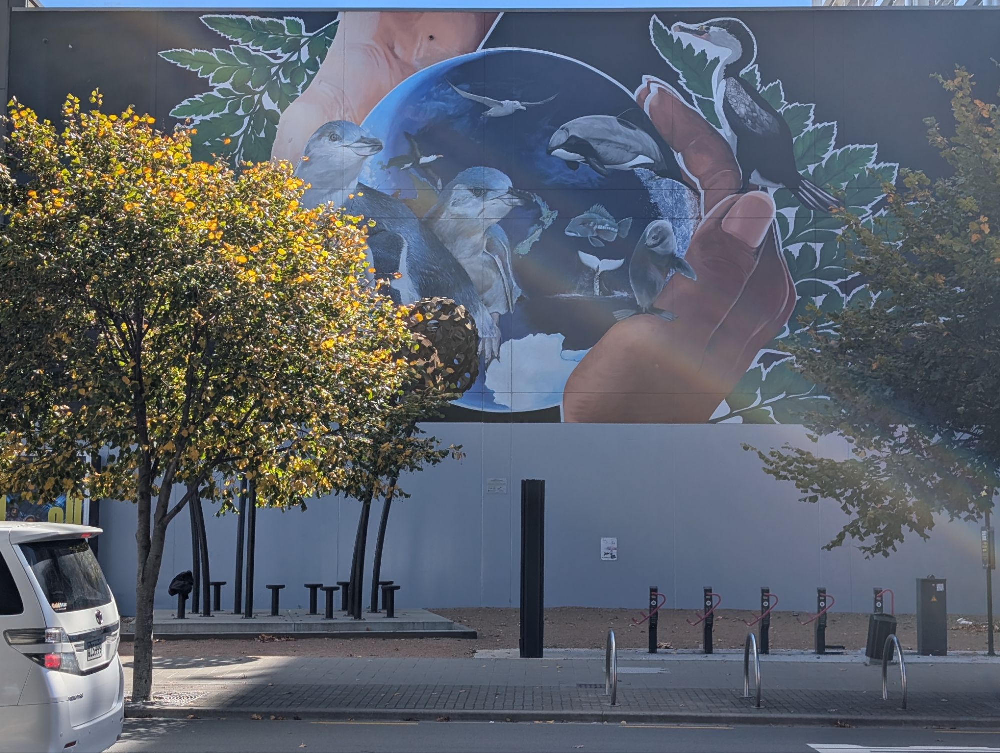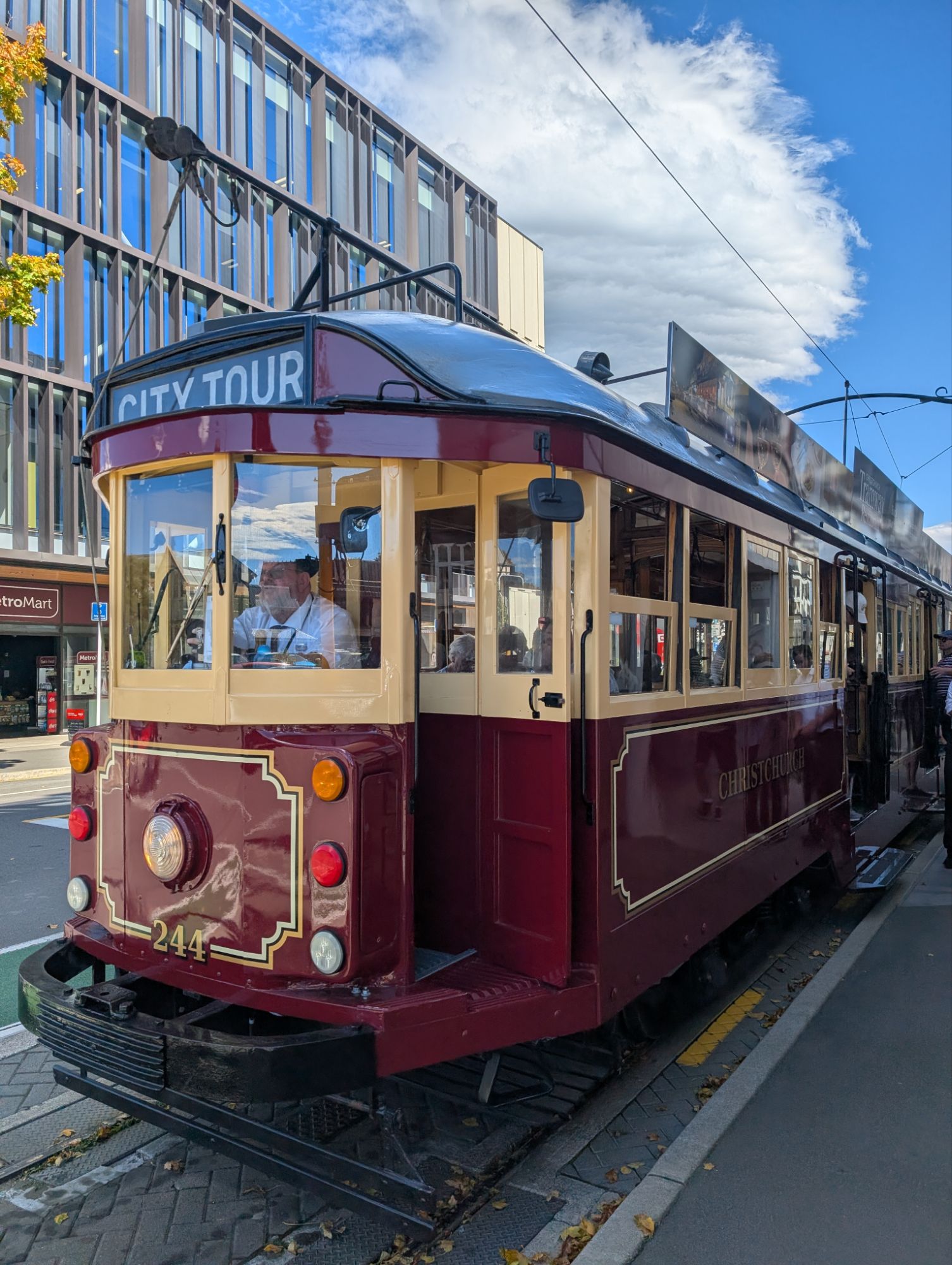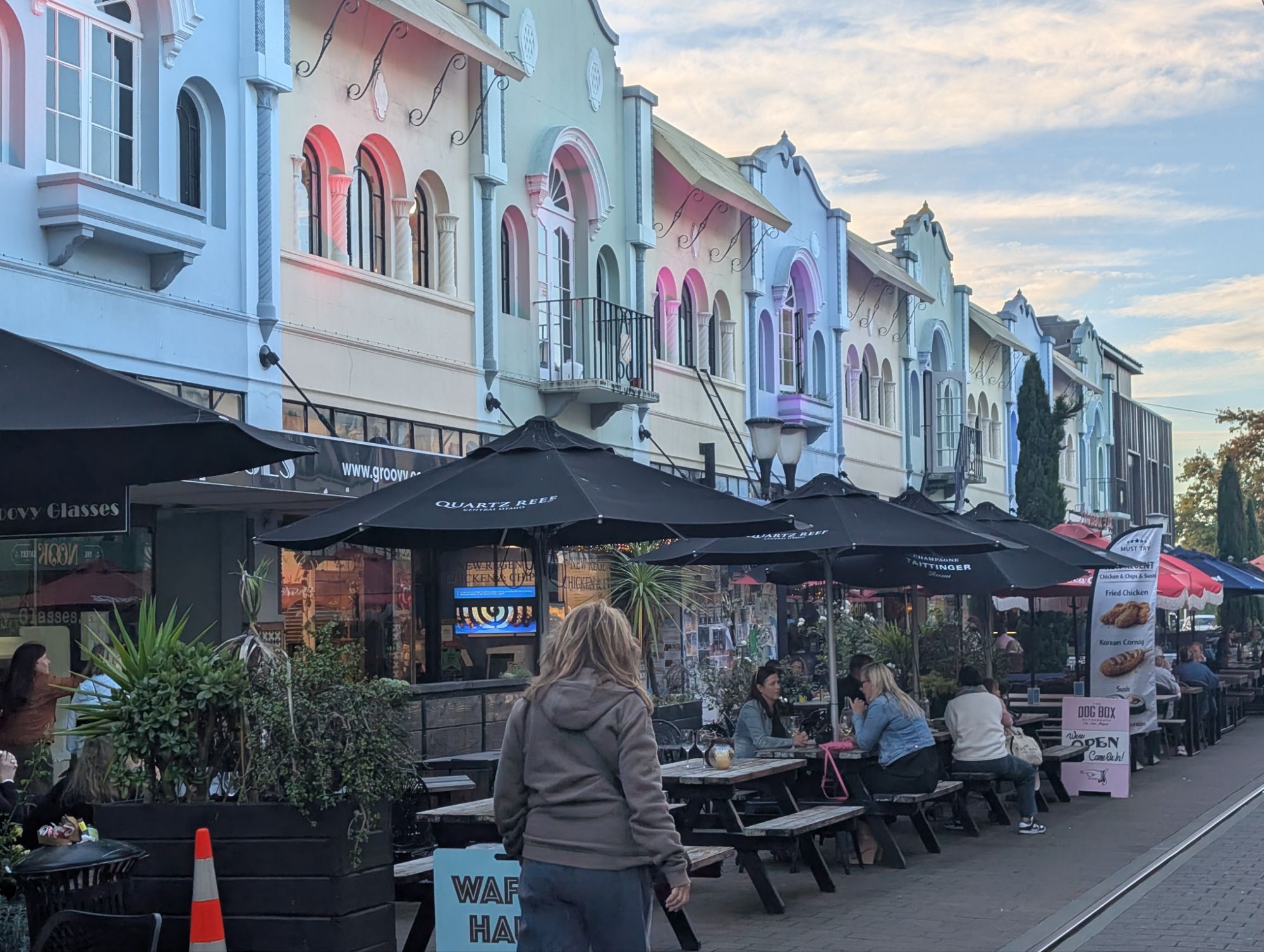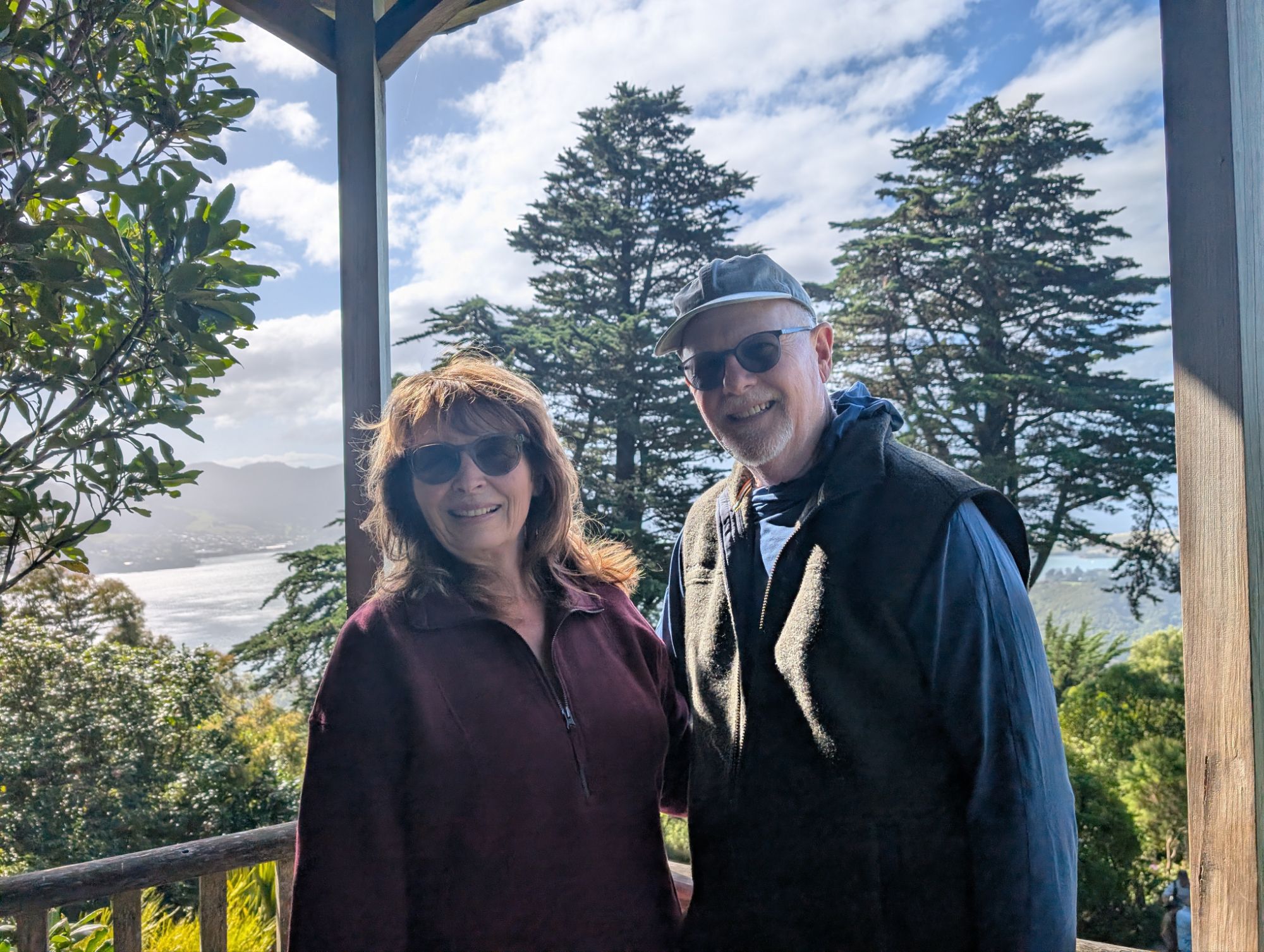 Christchurch is still recovering from the 2010-2011 7.1 earthquakes. Construction is ever present and mostly modern. Whether buildings were destroyed outright or had to been torn down, there was acres and acres of emptiness. The city initiated a campaign to “Fill the Gap” with beautiful murals in the empty spaces. The art is a true expression of the creative resilience of the people of ChristChurch. Later, we also spent an hour in the Earthquake museum listening to accounts of that unbelievable day. John was struck by the large number of young adults on the streets. This morning, our first stop was a local guitar store where we met Snow, another left-handed guitarist who is moving to Northridge, CA in the coming months to study musical composition. I suspect we may see her again. We traveled on a set of historic trolleys that allowed us to jump on, jump off throughout the day. That gave us an easy overview of the city. Tonight we had a long fascinating dinner with Sarah and Randall’s grandson Royal, who now goes by Roy. We also met his remarkable partner, Haven. The conversation was so lively, we ended up being the last people in the restaurant.