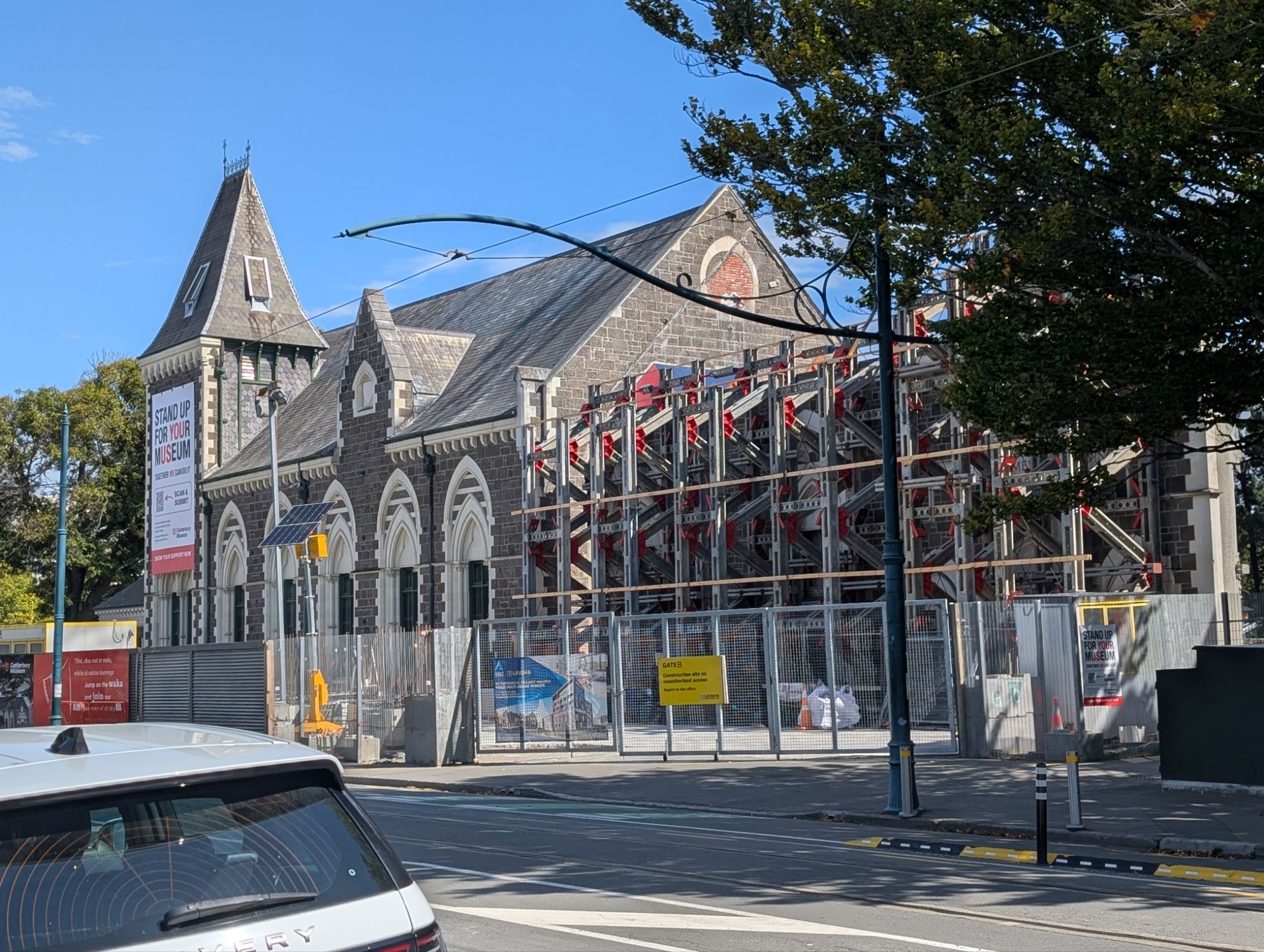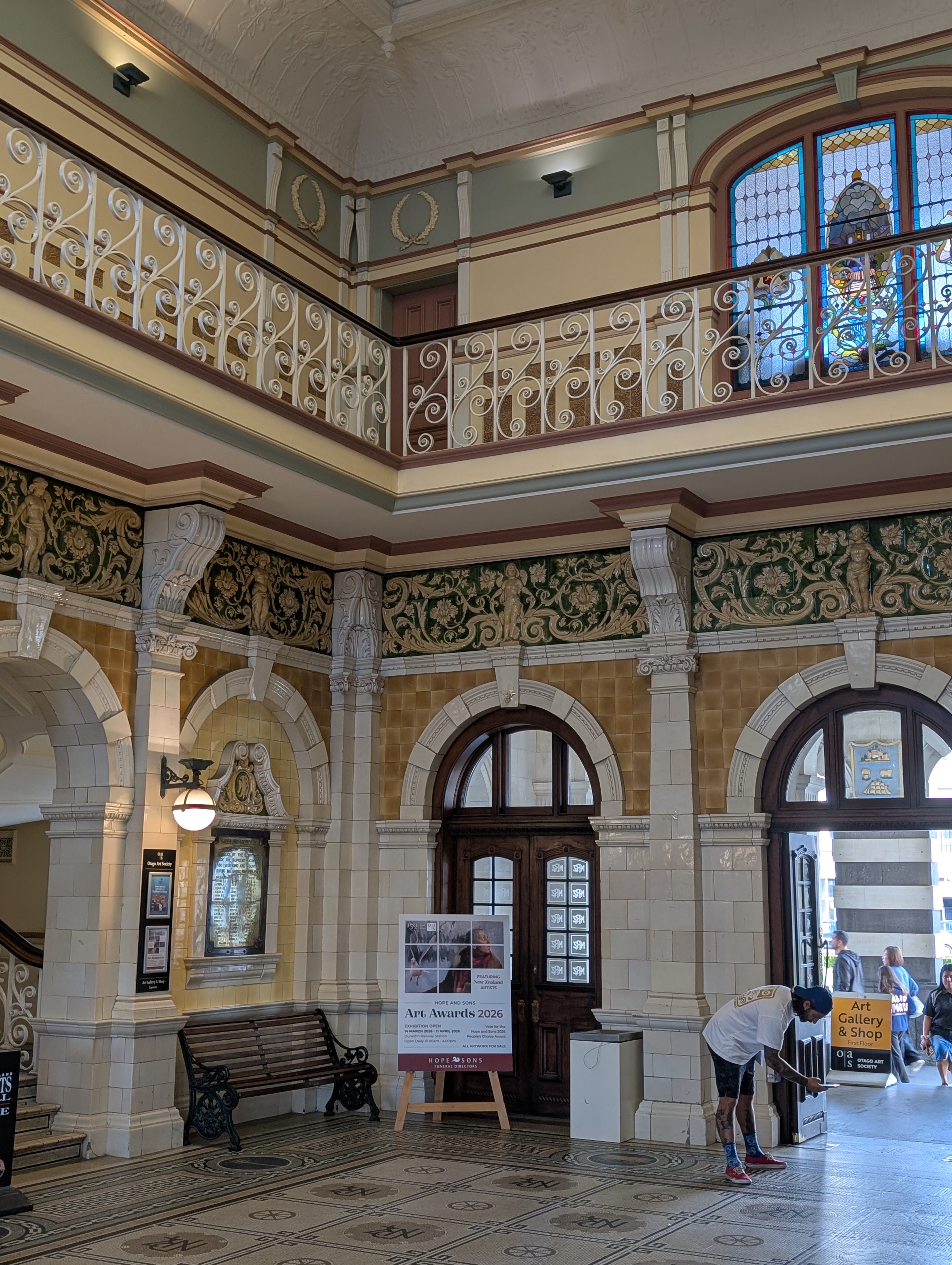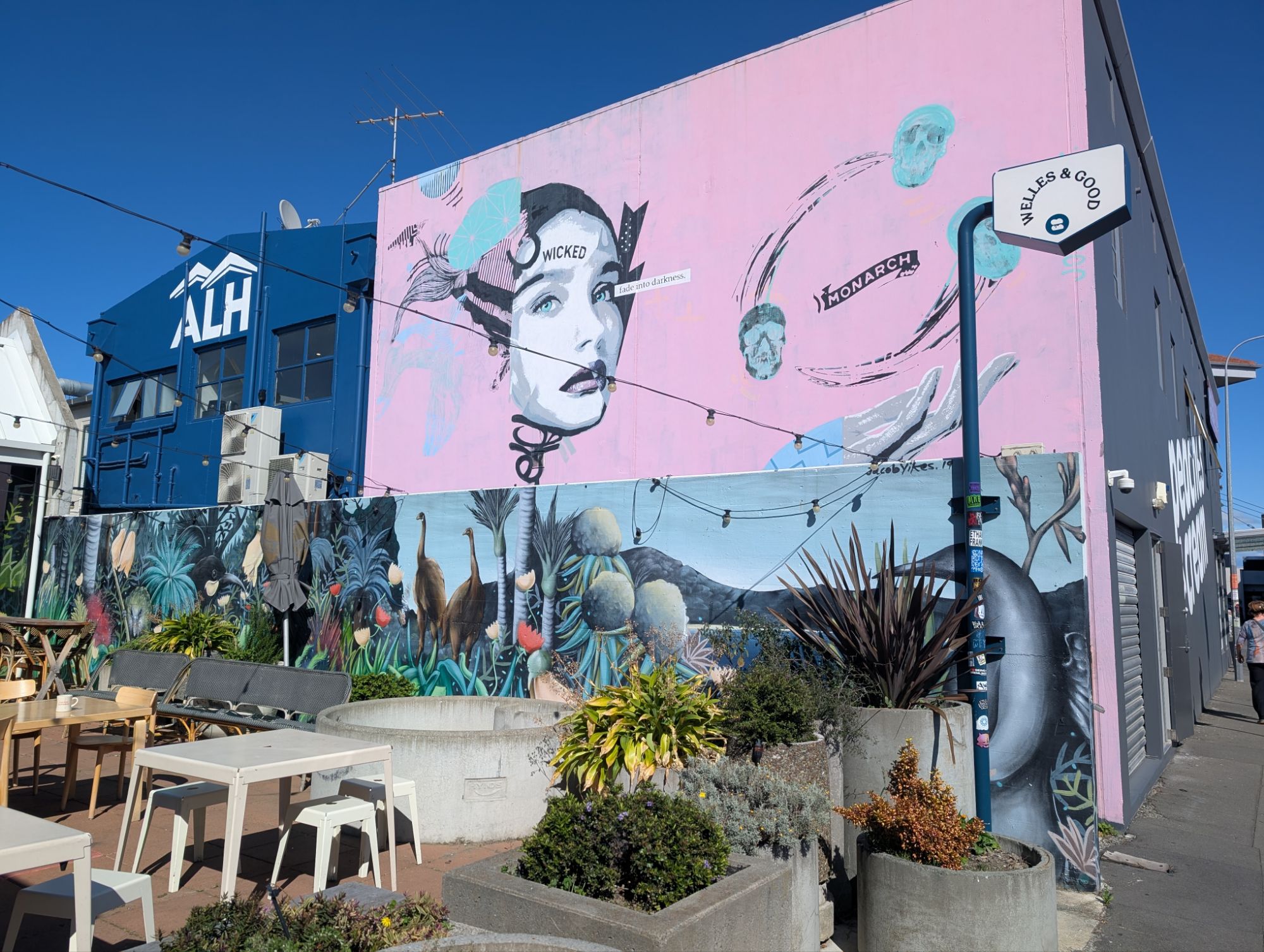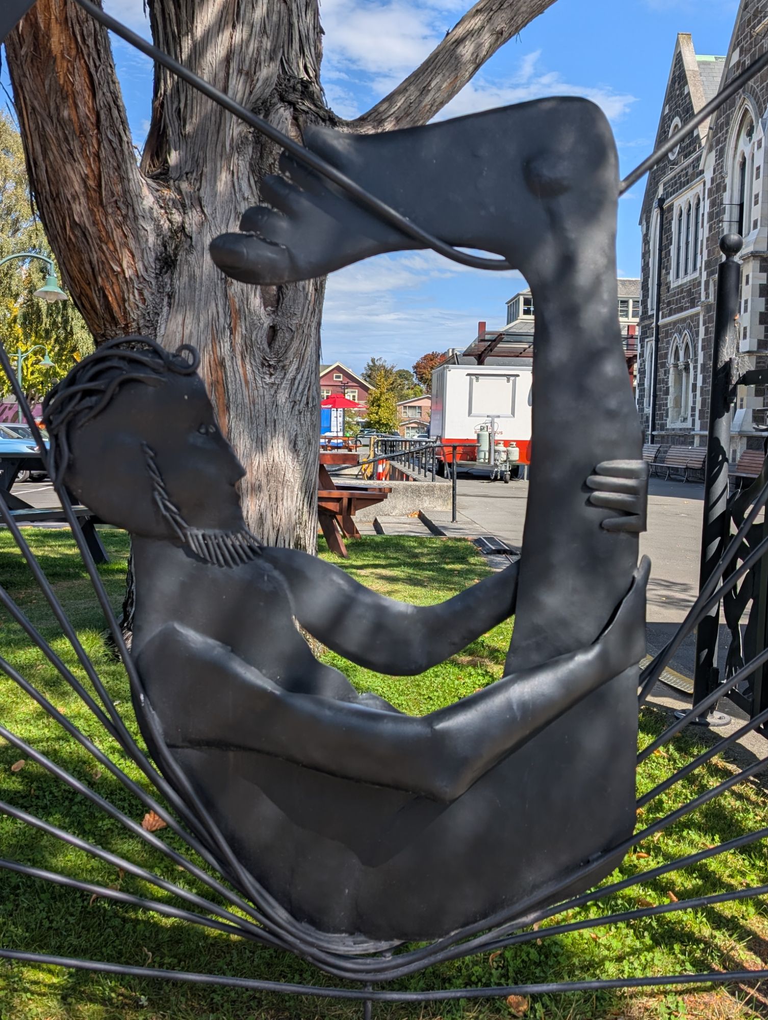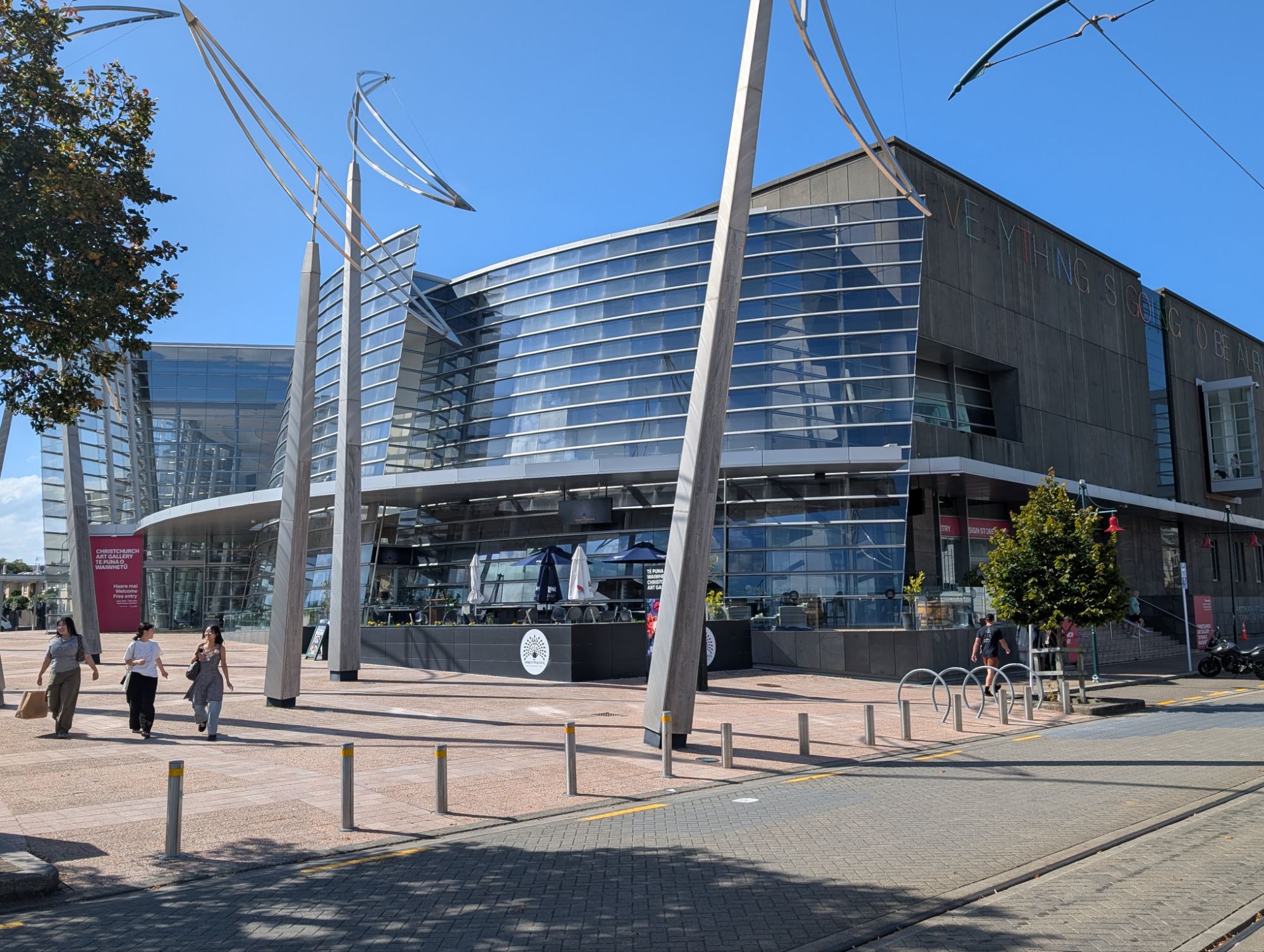 Christchurch is still recovering from the 2010-2011 7.1 earthquakes. Construction is ever present and mostly modern. Whether buildings were destroyed outright or had to been torn down, there was acres and acres of emptiness. The city initiated a campaign to “Fill the Gap” with beautiful murals in the empty spaces. The art is a true expression of the creative resilience of the people of ChristChurch. Later, we also spent an hour in the Earthquake museum listening to accounts of that unbelievable day. John was struck by the large number of young adults on the streets. This morning, our first stop was a local guitar store where we met Snow, another left-handed guitarist who is moving to Northridge, CA in the coming months to study musical composition. I suspect we may see her again. We traveled on a set of historic trolleys that allowed us to jump on, jump off throughout the day. That gave us an easy overview of the city. Tonight we had a long fascinating dinner with Sarah and Randall’s grandson Royal, who now goes by Roy. We also met his remarkable partner, Haven. The conversation was so lively, we ended up being the last people in the restaurant.