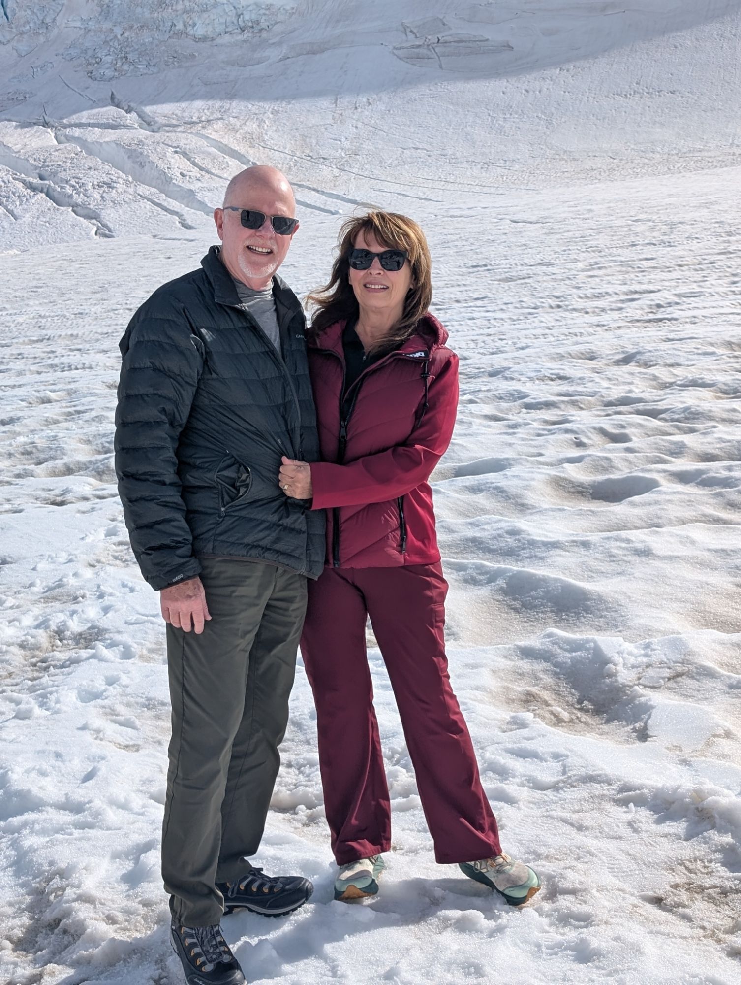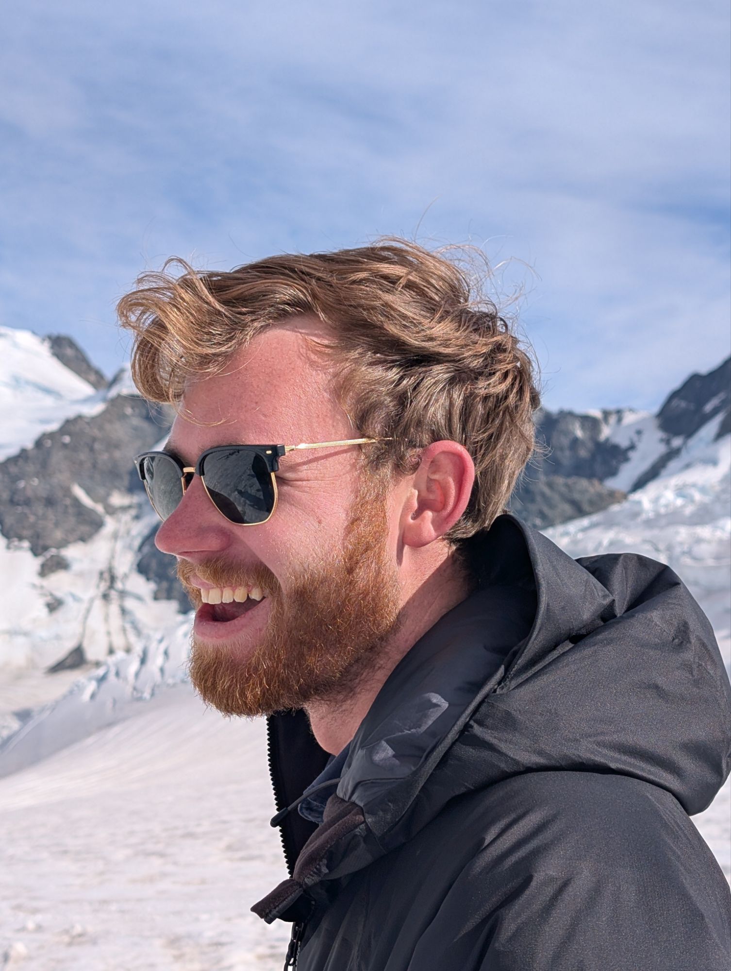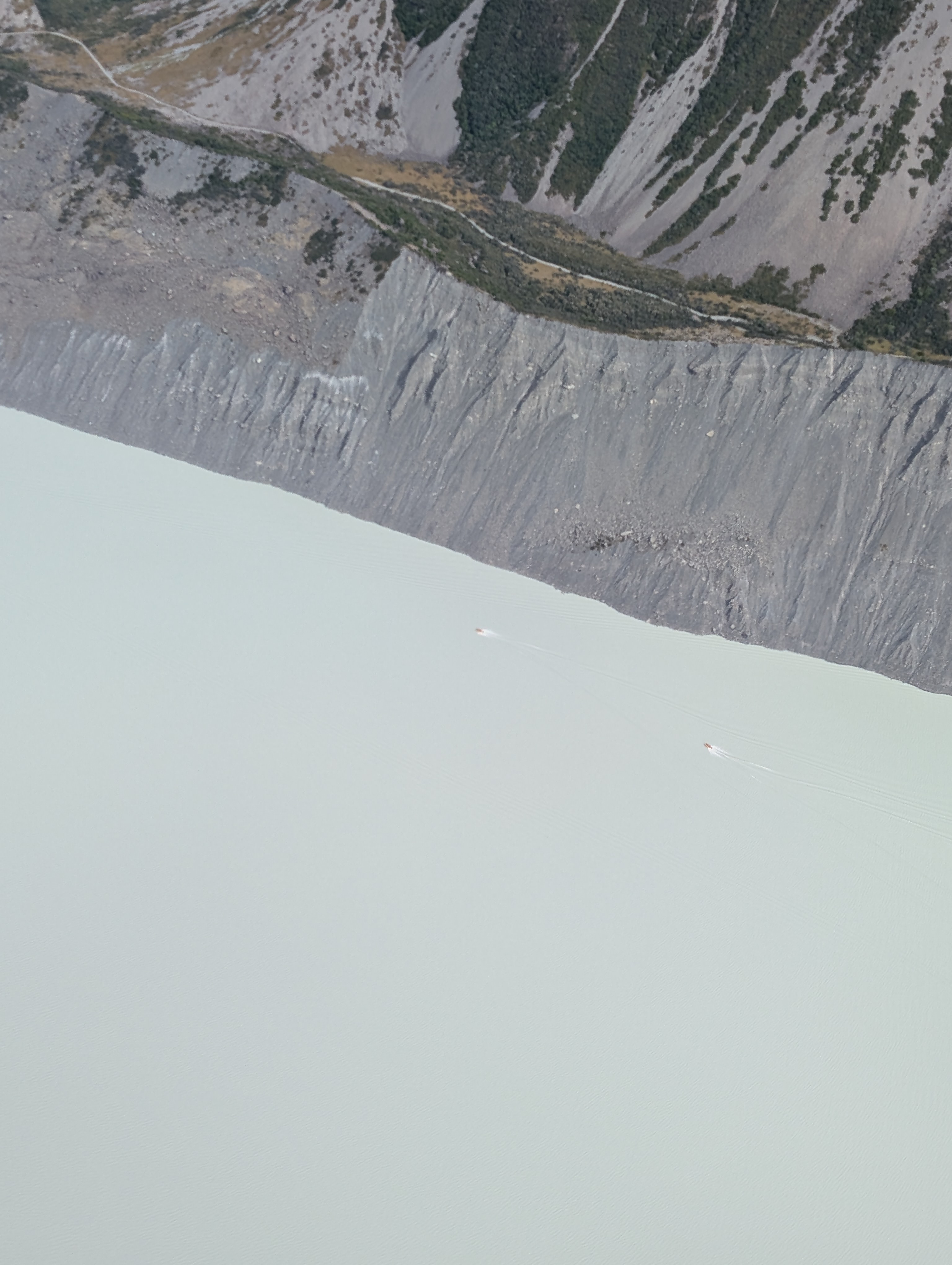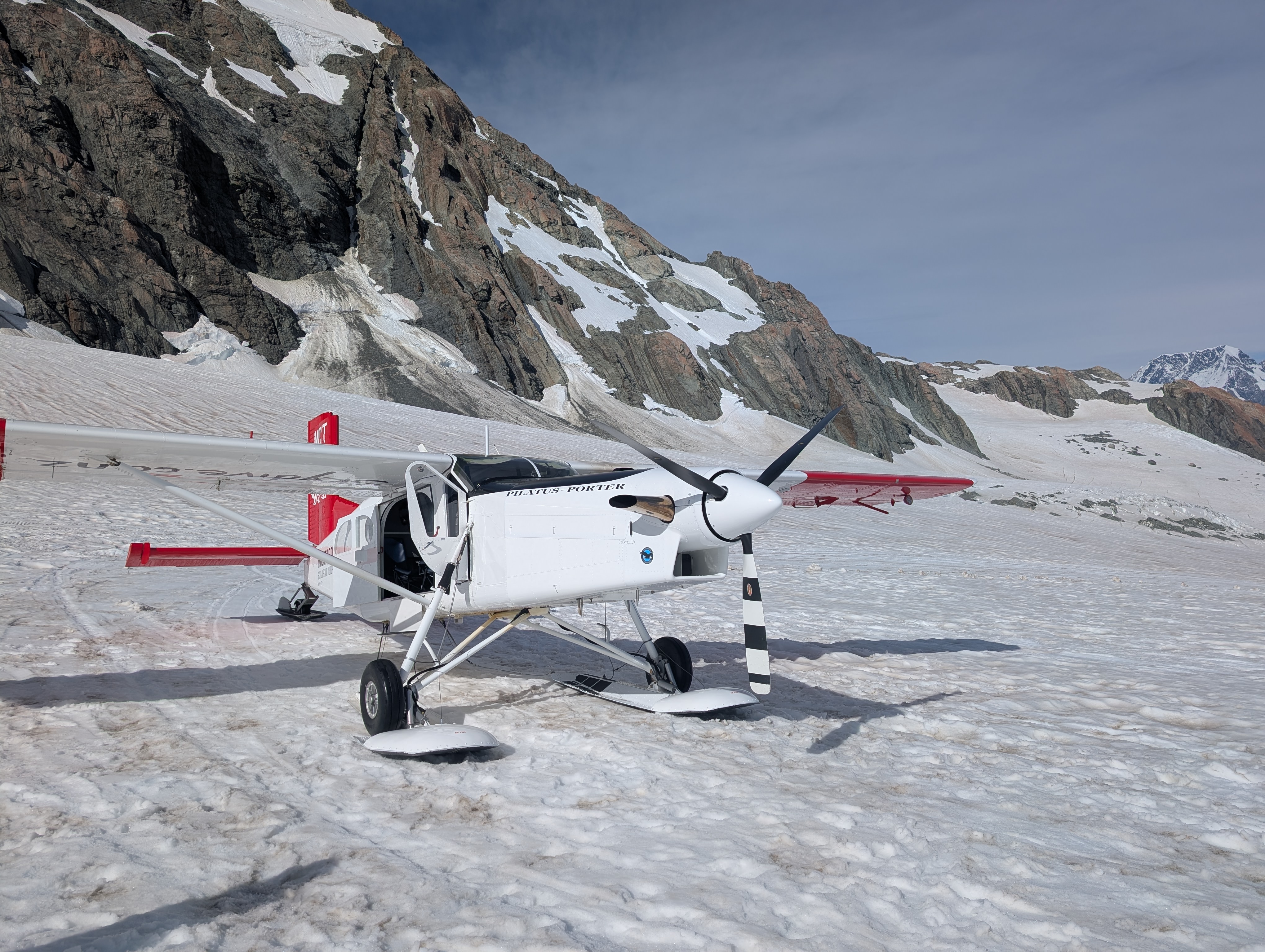 Today we drove to Mt Cook, flew in an 8-seat plane and landed on the Franz Joseph glacier. John sat in the cockpit beside the pilot. Once again, the guy who used to be afraid to cross a bridge or look over the Grand Canyon cannot get enough of heights. Meanwhile, Kate is in the second row, one-cheeked again the door. The first serious bump had her clutching the stranger on her left. He was a generous fellow as his wife was screwing holes in his knee on his right side. Did Kate take any photos? Well, she might have if she had had her eyes open. Rather, she was praying to all that is holy to get her the hell onto the ground. She did manage to take a photo of our rather young American pilot. He assured her with some sort of analogy involving a fork and jello, that the turbulence was nothing to worry about. She had to have faith, because she was on a glacier. It is difficult to fathom how big these mountains actually are. The pilot pointed out the crevasses below. They are much deeper than they look. Some were between 150 to 3000 feet deep. So, if one were to fall in? That is that. The glacial water was an otherworldly color: not green, not blue. Magical. Really, all in all, an extraordinary day!