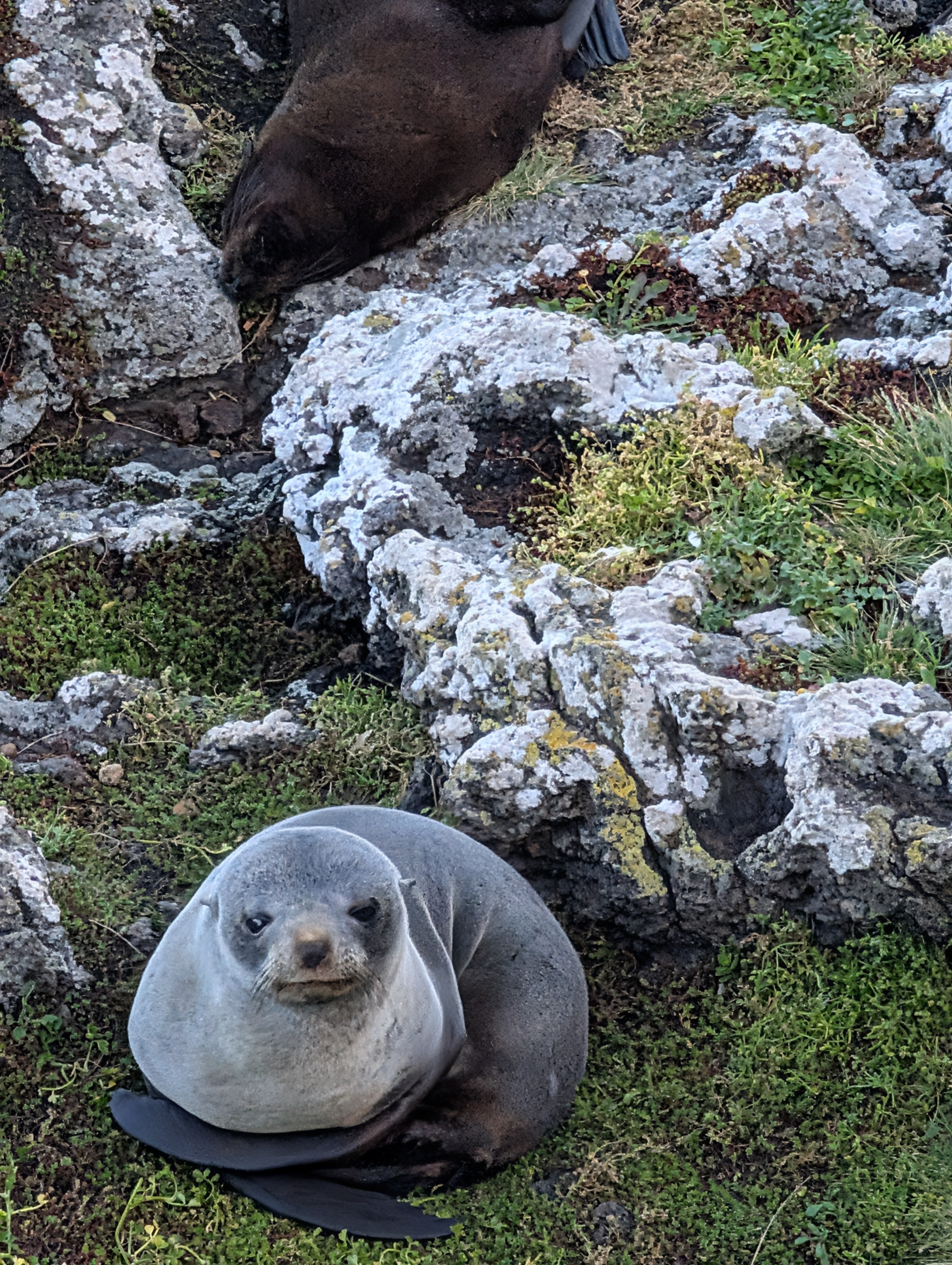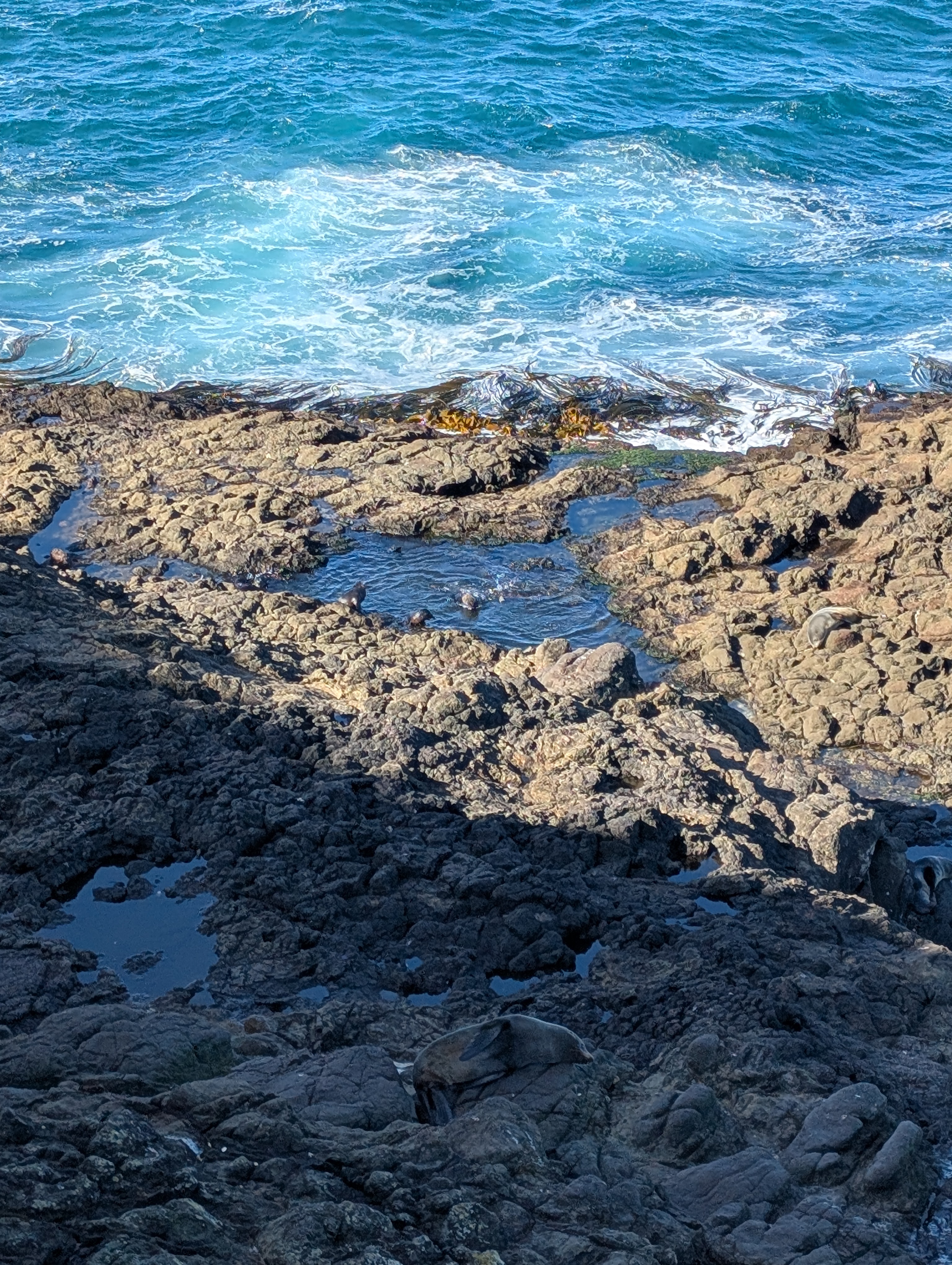 But the real story of the Otago Peninsula is the natural world. This is a bird lover’s dream. The rare and very timid yellow eyed penguin lives here and in Antarctica. We saw several of them. The strange red-eyed oyster catcher is other worldly. I saw a spoonbill as we were walking around the harbor. It looks quite prehistoric. On the beach, at the end of the world were sea lions, and this generation’s baby seals playing in their own very private baby pool. We looked toward the sea over cliffs six million years old. Were we looking toward the Antarctic? No, we were looking toward South America. Very disorienting. And somehow quite intoxicating. It was a clear day and, apparently, a lucky day for spotting creatures in their own environment.