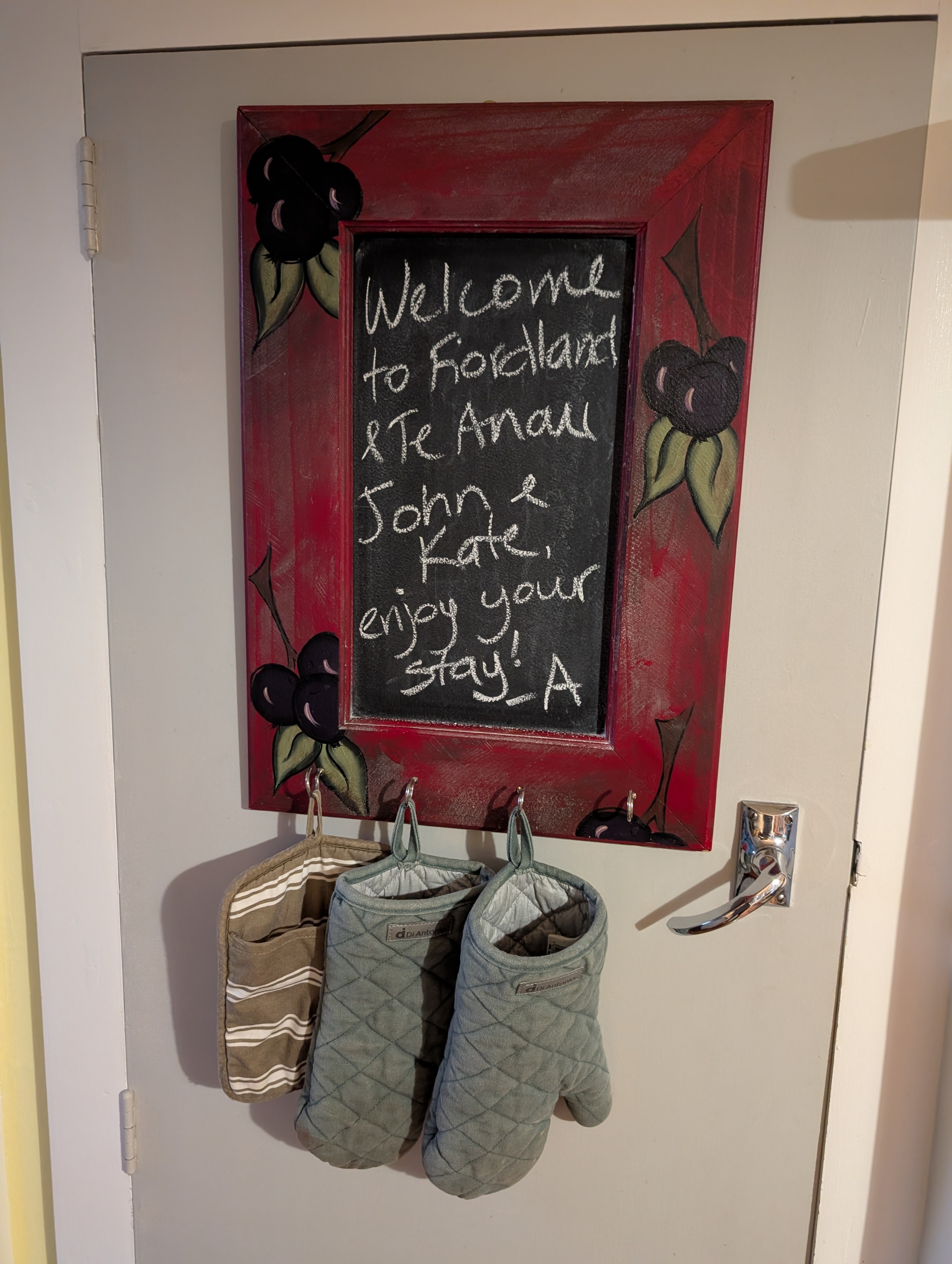 After our civilized three nights in Dunedin, we knew we had a long time on the road. So, rather than trying to just put pedal to the metal and drive straight through farmland and the slow rise into the Southern Alps, we were kind to ourselves and stopped whenever we hit a little town. We were richly rewarded in a place called Milton. Once again, we came upon a cafe owned and operated by women. This one was called The Forum Cafe. All of the baked goods were made in the small kitchen. The cinnamon roll I ordered was so exceptional, I asked to give my compliments to the baker. She came out and wrote the recipe on a post-it. There was a small corner where all the local grandmothers gathered with young mothers and their babies. The corner was filled with toys and a small child’s play kitchen. In the back, near the bathrooms were hand knit baby clothes available for sale. You were on your honor to leave cash for your purchases. There were cook books on every table, encouraging customers to come, sit and take their time to read and be part of this welcoming community.